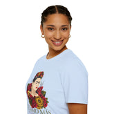 This exclusive Frida Kahlo collection celebrates the strength, authenticity, and creativity of one of the most influential artists in history. Each t-shirt blends iconic portraits with signature elements of her work, conveying power, passion, and resilience. The designs are versatile and appealing to different audiences, highlighting her intimate and reflective side in black and white while radiating energy through colorful illustrations featuring butterflies and Mexican symbols. This t-shirt represents female empowerment, cultural identity, and self-love, perfect for art enthusiasts and those who appreciate Frida Kahlo's legacy. Ideal for celebrating Women's History Month, International Women's Day, or any occasion that honors strong women and artistic expression.